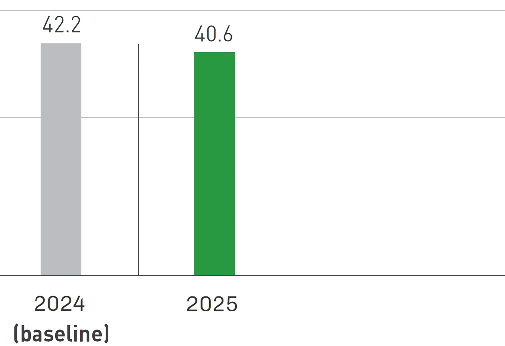 Our carbon emission intensity ratio was 40.6 (2024: 42.2).